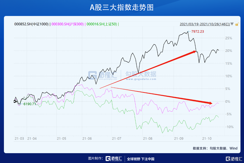 今年市值越小,上漲概率越大。年初市值萬億規模的有8家,上漲僅有招行,比例僅12.5%,年初市值20億以下的,有337家,上漲比例高達58%。從另外的側面也可以印證:中證1000、滬深300、上證50的表現呈現喇叭口,今年漲幅分別10.86%、-7.13%、-11.77%。