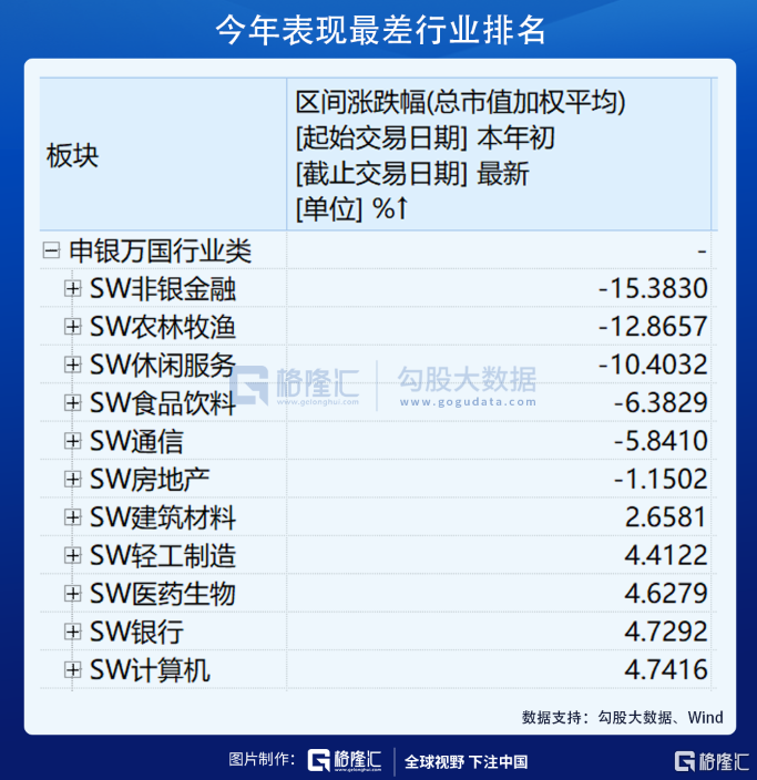 最後看行業,今年表現較好的有傳統週期,包括化工、有色金屬、鋼鐵、煤炭等,還有硬核科技,包括新能源汽車、芯片、光伏等。今年表現最差的是保險,中位數跌幅高達30%,還有食品飲料、房地產也差強人意。另外,醫藥行業大類,整體漲幅爲4.6%,而細分領域的生物製品大跌13%,醫藥商業更是大跌逾20%。