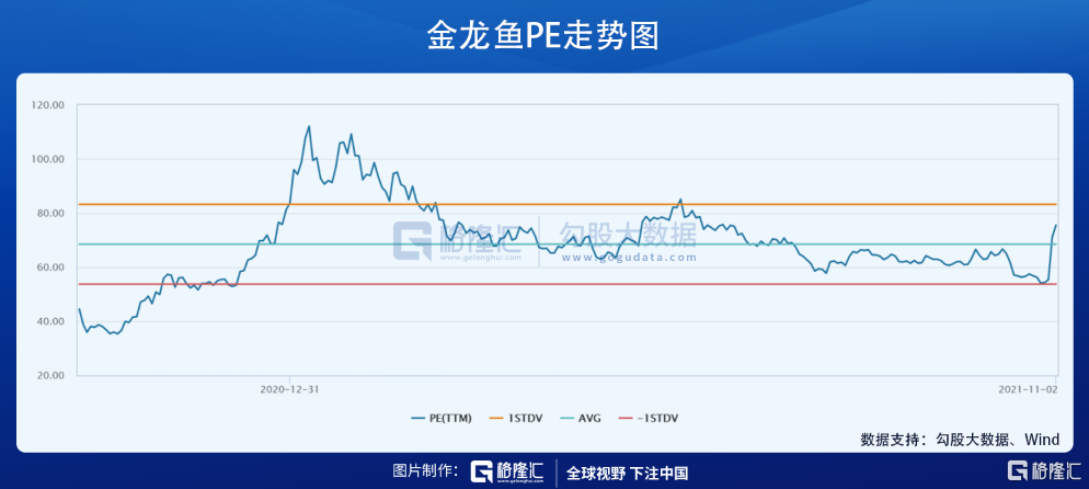 今年金龍魚一度大跌近60%,最主要邏輯就是殺估值泡沫。不過當前還有75倍PE,仍處於非常高的位置,還有進一步的下殺空間。