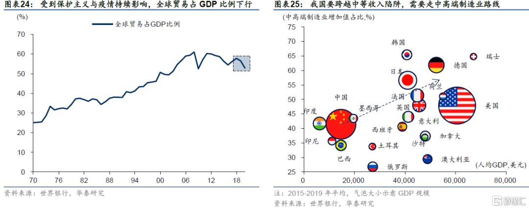 我們身處百年變局的年代,逆全球化、保護主義思潮出現,中美關係已經發生深刻變化,第四次產業轉移正在出現,新一輪科技革命方興未艾,碳減排已經是全球共識,身處新發展階段。在新形勢下,中國國家層面的“KPI”都已經出現了大的調整,創新、協調、綠色、開放、共享等新發展理念已經在影響方方面面,共同富裕是長期目標,效率與公平並重。產業鏈補鏈強鏈,“削山排雷”,都是爲了高質量發展、可持續發展,做大國內內需市場,打造雙循環發展格局。去年以來的疫情不僅短暫地給全球經濟按下了暫停鍵,行至今年,疫情給逆全球化、國際競爭、產業變遷、政治思潮等帶來的“加速效應”逐漸顯現。