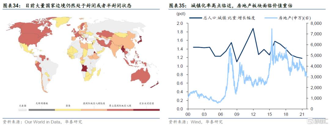 短週期來看,疫苗、特效藥逐漸推出,疫情對全球開放國門的約束將逐步消退,除前述產業鏈有望修復外,社交經濟、服務消費、出行等領域或也將明顯好轉,相關行業板塊與大宗商品(如原油等)有望受益。長週期來看,人口增速下行、城鎮化率達到階段性高點、房地產行業此前的過度金融化,使得房地產行業大週期拐點或已臨近,此前依賴高槓杆、高週轉、證券化的行業發展模式難以爲繼。房地產板塊面臨價值重估,而相關黑色系大宗商品受到的潛在衝擊可能更爲直接。