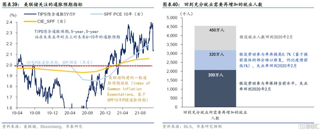 3、就業市場異常表現。我們根據不同的定義計算了回到充分就業尚需增加的就業人數在200萬至450萬之間,明年達到或接近充分就業的難度不大,就業較通脹更快地收斂至目標水平或成爲明年提前加息的基本假設。但若非農就業恢復不及預期,或出現結構性變化,可能會影響美聯儲的政策節奏。