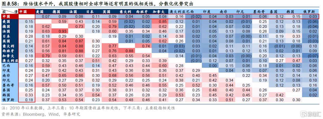 5、估值:絕對水平系統性下行,相對歷史的意義不大,長期趨勢偏下。相對股票較爲中性。中美利差有望繼續收窄,但仍足夠寬。信用利差處於歷史低位;