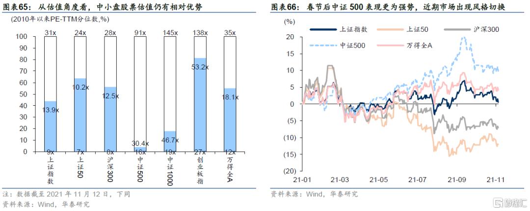 明年宏觀環境壓力仍存,貨幣政策易鬆難緊,居民資產再配置繼續,海外流動性略有弱化,整體會呈現小幅上行的趨勢,結構上仍會是高低估值並存的狀態。美聯儲縮減QE落地、全球流動性邊際收緊對風險偏好可能會形成壓制,但是傳導並影響A股市場則相對有限。目前股市整體估值仍合理,以中證500爲代表的中小盤股估值仍處於較低分位。板塊之間差異仍存,電氣設備、汽車、食品飲料、交通運輸等板塊PE-TTM仍處於歷史高位;而房地產、建築裝飾、傳媒等板塊PE-TTM處於歷史低位。行業估值分化較先前有所調整,比如從年內高點回落的食品飲料板塊、處於近兩年估值低位的家電板塊。需要注意的是,估值分析不能簡單應用均值迴歸思路,需以中國版ESG視角理解市場的估值邏輯重構,新能源等維持右側思路,價值股開啓左側定投模式。