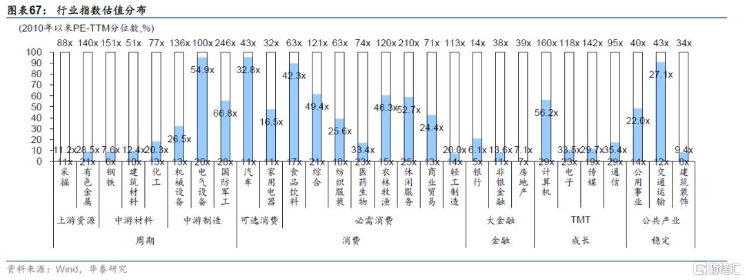 理財整改等導致股市等機會成本降低支持結構性行情,從板塊估值的角度尋找結構性機會,我們認爲:(1)週期股龍頭性價比並不差,但整體窪地機會已少,宜採用聚焦龍頭策略。採掘和軍工還有窪地效應,鋼鐵、建材在業績支撐下性價比仍不差,設備製造、有色、化工整體仍被高估;(2)消費股整體有仍修復空間,但龍頭股估值有兌現過度可能,更適合“多點開花”而非“合於一處”,安全邊際是核心;(3)TMT窪地機會最多,最容易形成基本面和估值共振,TMT板塊可大膽佈局通信+電子,計算機優先選擇專精特新等政策加成的品種;(4)大金融及公用板塊“避峯尋谷”,以尋找階段性機會爲主。