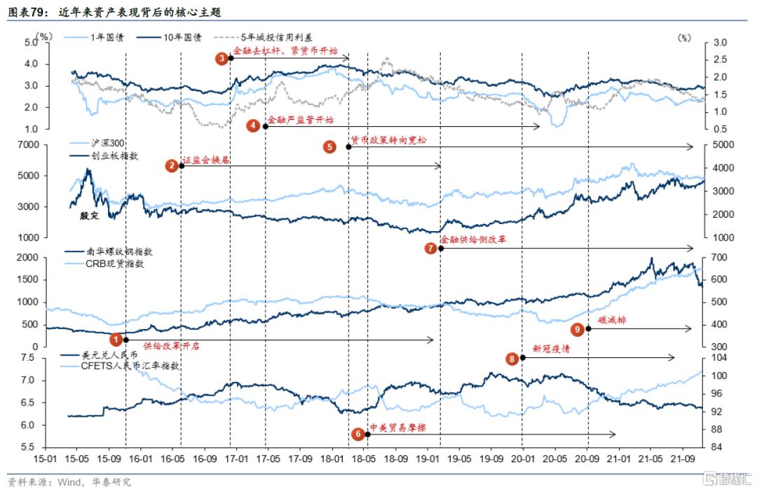 換屆背景下,“做長期正確的事情”與“短期穩定”再平衡,逆週期對衝或使得週期輪轉加快、波動減小。關注六條主線:1、全球產業鏈修復利好此前受約束嚴重的行業;2、PPI-CPI剪刀差收窄,成本壓力緩和下的中下遊行業“困境反轉”;3、減碳投資、產業鏈補強相關行業;4、逆週期政策發力新基建;5、美聯儲主導下的全球央行緊縮週期下的美元、貴金屬與新興市場;6、全球開放國門下的社交、出行相關行業與能源品,中國地產大週期拐點下的黑色系走弱趨勢。