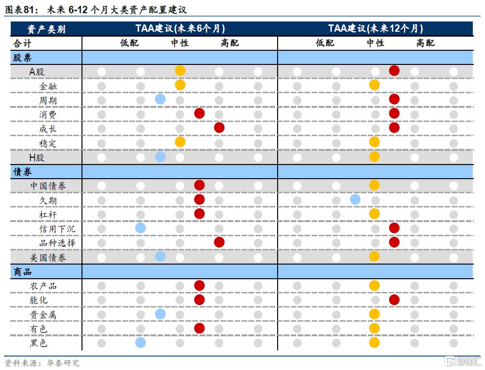 明年在高質量發展大格局下,“雙碳”目標、國內大循環、科技自主可控等仍然是值得長期配置的底倉方向。而換屆之年政策維穩、全球國門開放、產業鏈修復、上下遊利潤再分配等短期事件,又貢獻了可以階段性進攻的主題。我們認爲明年上半年債券仍有可爲、股市結構市,下半年逐漸向股票切換。全年來看各資產類別,股市成長+消費>穩定>金融>週期,重視新能源、新基建、軍工、國產替代等板塊機會,債券品種選擇>槓桿+久期>信用下沉,商品能化>農產品>有色金屬>貴金屬>黑色。