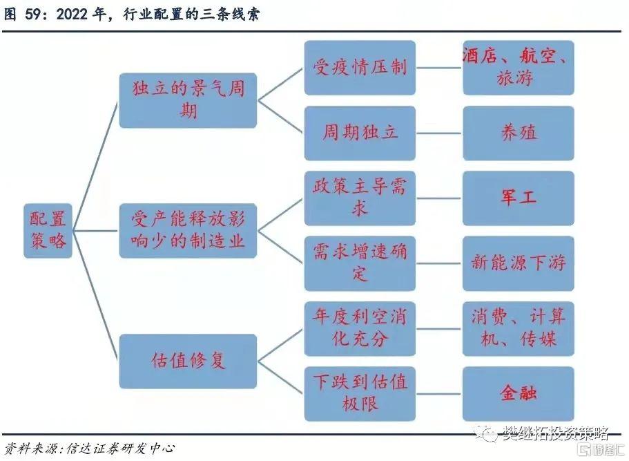 展望2022年,從經濟週期和產業週期的角度,2022年存在供需缺口的行業數量會大幅減少,只有部分供需結構和其他行業完全獨立的行業可能能有持續的景氣度超預期。建議關注:軍工(2022年爲數不多供需格局不會變差的高端製造業)、酒店&航空(疫情壓制越久,反轉來得越持久)、養殖(獨立的豬週期,目前基本面在左側,2022年下半年重點關注)和新能源下遊(需求確定性比供給確定性高,更安全)。