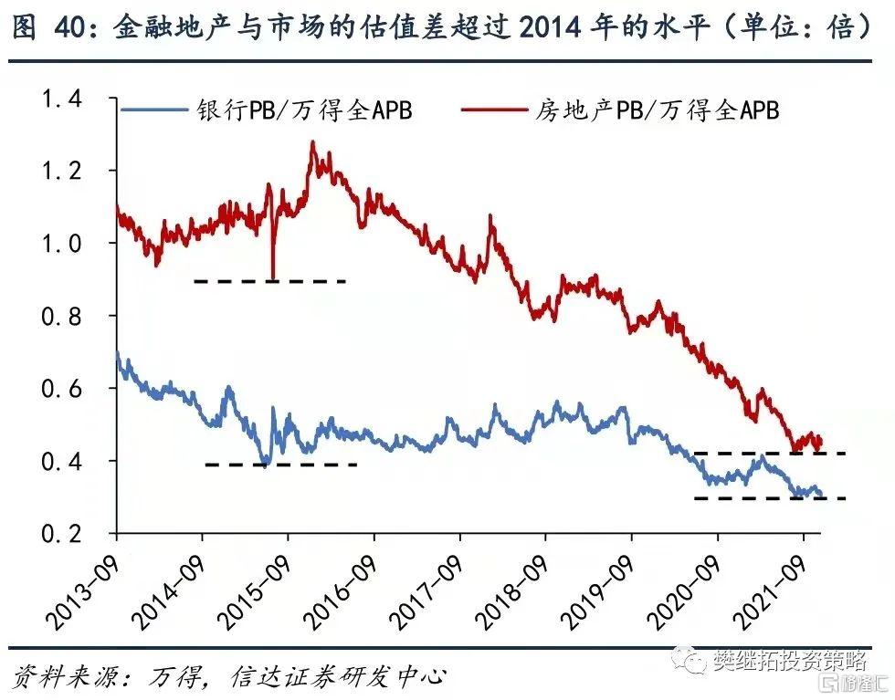 邏輯三:金融股估值中樞有跟隨整個市場估值擡升的空間。過去的兩三年,股票市場的資金在緩慢增加。在第三部分我們預計2022年A股資金面將維持淨流入。考慮到金融地產的體量佔A股總市值的20%左右,如果金融股的估值中樞不擡升,整個市場估值中樞的擡升也是存在天花板的。由於市場整體存在慢牛的邏輯,市場估值有提升的趨勢,此時金融股就會有估值擡升的空間。