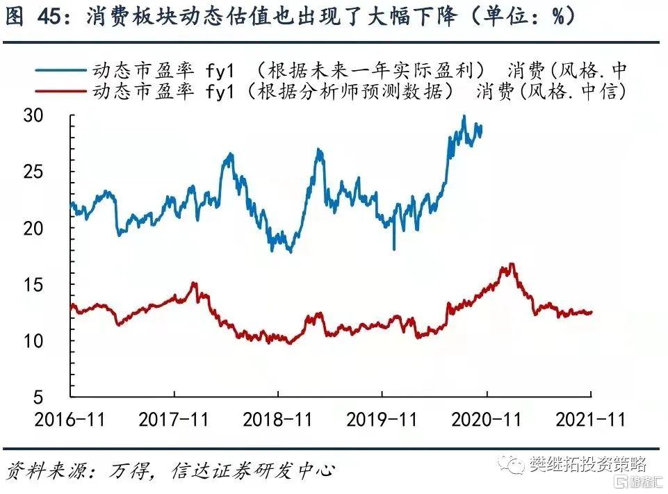 不過長期來看,2010年之後消費板塊是持續跑贏大盤的,長期的年化收益穩定在10%以上。即使按照最悲觀的假設,即龍頭白馬的業績會出現趨勢性的下降,類比2015年牛市高點的創業板指,在2016年ROE拐點出現之前,還有一波大的反彈。