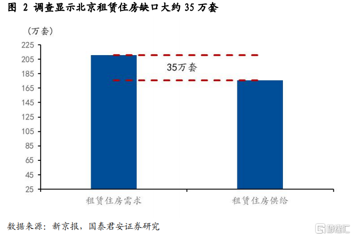 我國住房保障體系中,保障性租賃住房是最大短板。目前公租房對城鎮户籍的低保、低收入住房困難家庭已經做到了應保盡保,共有產權房則是各城市政府因地制宜,沒有統一政策;而保障性租賃住房的供需矛盾比較突出。住建部負責人在國新辦新聞發佈會上表示,大城市有70%的新市民和青年人租房,然而租金付得起的房子區位比較遠,區位比較好的租金又比較貴,成為新市民、青年人買不起房和租不好房的一個現實困難。以北京市為例,有政協委員通過調查發現,目前北京市租賃住房需求約為211萬套,租賃住房供給約為176萬套,缺口約35萬套。