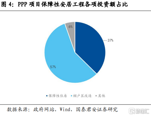 第一,城投公司、房地產開發企業均可參與,部分保障性租賃住房具有“類基建”性質。參與保障性租賃住房建設的市場主體不限於房地產開發企業,地方城投平台、專業化住房租賃企業均可參與。例如,濟南保障性租賃住房規劃即指出,“政府給予土地、財税、金融等政策支持,積極引導多主體參與保障性租賃住房,鼓勵國有企業及各類社會主體參與保障性租賃住房建設和運營管理”。從西安的規劃可以看到,市級和區級城投平台公司承擔了67%的保障房建設任務,房地產和住房租賃企業則承擔了33%。對於城投平台參與假設的保障性租賃住房,其運作模式類似於基建投資。正是由於保障性租賃住房具有“類基建”性質,目前較多采用PPP建設模式。截至2021年10月,PPP項目中保障性安居工程投資額為4206億,其中棚改佔比約57%,保障性住房佔比約37%,體量在1600億左右。