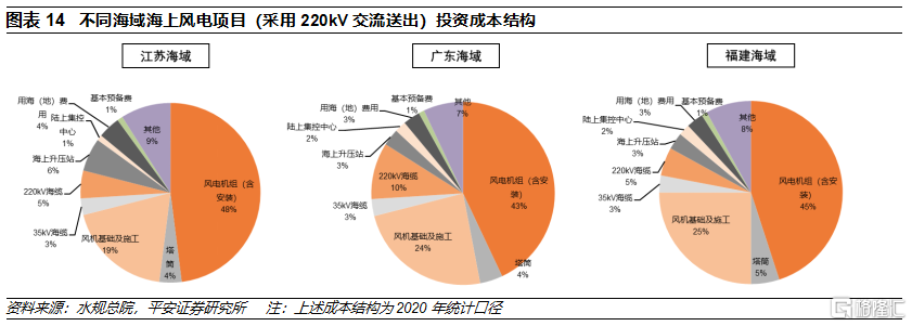 海纜佔傳統海風項目投資成本的8%-13%左右。海上風電項目的主要成本構成主要包括風電機組、管樁/塔筒、海纜、變電站/換流站等主設備以及相關的施工工程,近年總投資成本約14-18元/W,後續有望較大幅度下降;不同海域(對應不同的海底地質條件)、不同的水深和離岸距離對應的海上風電項目成本結構不同,一般海纜採購相關費用佔海上風電總投資成本的8%-13%。