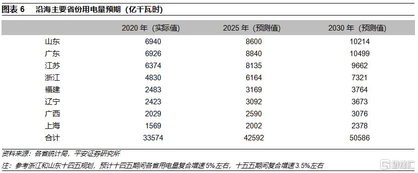 到2030年,海上風電有望爲沿海省份貢獻15%以上的電量。結合海上風電可開發空間、國內平價進程、海外發展經驗、沿海省份能源轉型等因素,我們估計,到2030年海上風電有望爲沿海主要省份(廣東、江蘇、山東、浙江、福建、遼寧、廣西、上海)提供約15%以上的電量(詳細的估算依據參見我們2021.12.28發佈的行業深度報告《海上風電:平價窗口臨近,邁向主力電源》),從而帶來巨大的海上風電裝機需求。