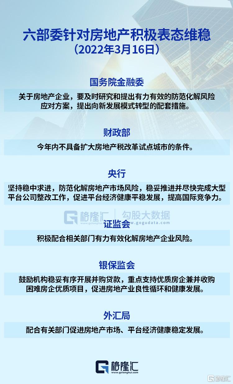 高層一發聲,六部委也是集體響應。銀保監會表示,要堅持房子是用來住的、不是用來炒的定位,持續完善“穩地價、穩房價、穩預期”房地產長效機制,積極推動房地產行業轉變發展方式,鼓勵機構穩妥有序開展併購貸款,重點支持優質房企兼併收購困難房企優質項目,促進房地產業良性循環和健康發展。