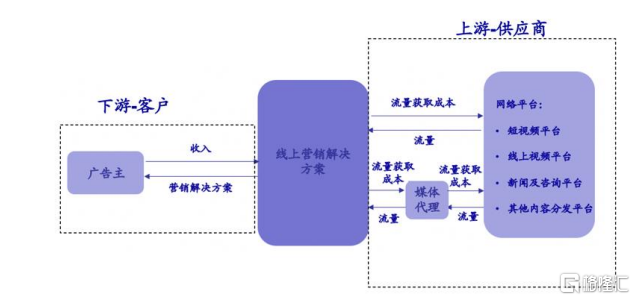 先簡單來了解下影響科技的商業模式:公司立足短視頻,主要是作爲廣告主與短視頻媒介之間的平臺服務商,服務內容包括但不限於廣告素材製作、獲取用戶流量、廣告效果優化、數據管理和分析等。