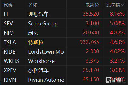 美股異動 | 新能源汽車股集體走高 理想汽車漲超8%