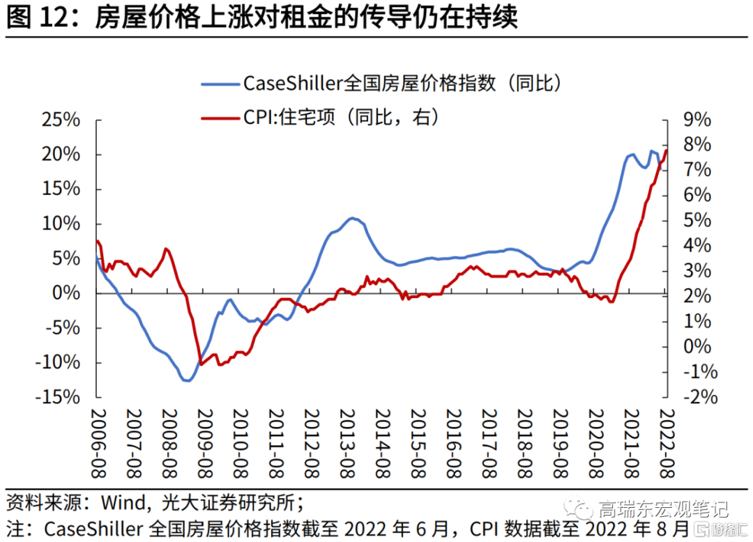 但需要注意的是,8月核心CPI超預期上行,核心商品和服務價格環比增速均高於上月,主要包括住宅、新車、交通服務、醫療護理服務等,顯示在勞動力供給短缺、供應鏈修復偏慢、房價堅挺的背景下,美國通脹粘性仍然較高。