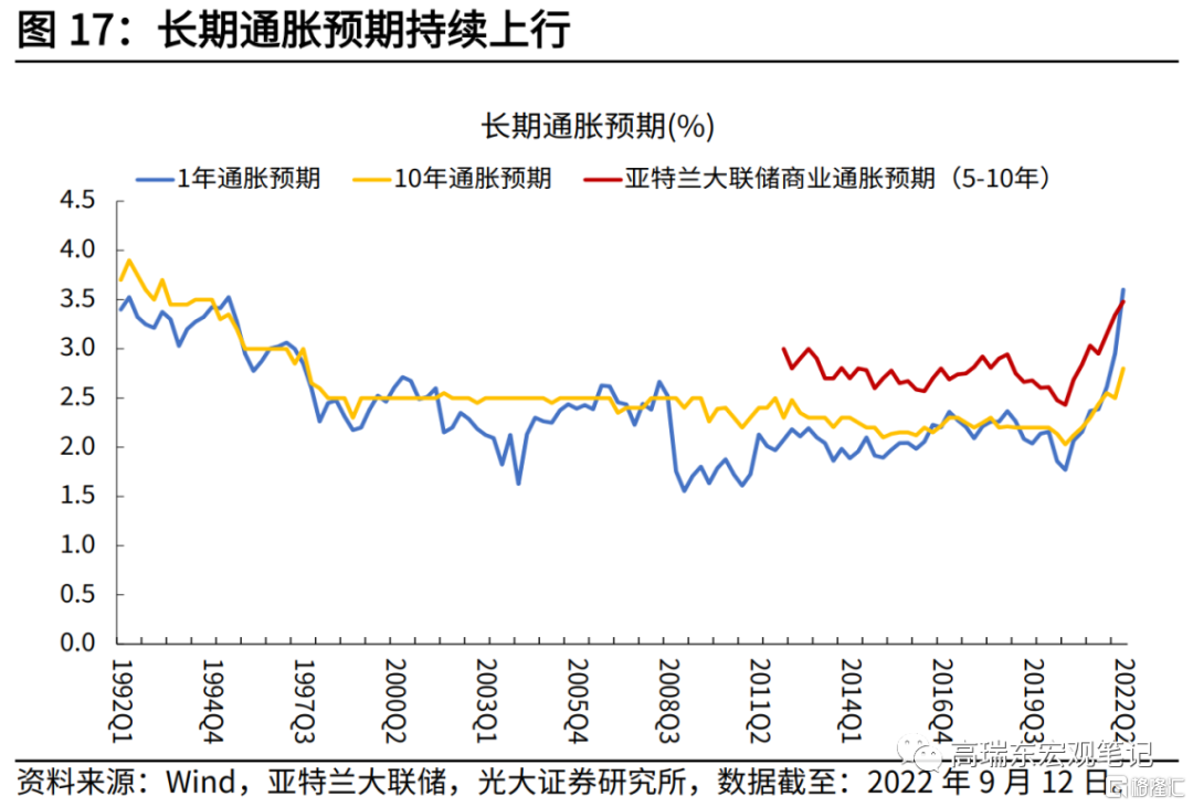 然而,商品、服務、勞動力市場的供需結構修復緩慢,推升通脹粘性,長期通脹預期仍然維持在較高水平,過早放緩加息有可能無法有效抑制通脹,對長遠經濟不利,預計9月議息會議中,美聯儲仍將激進加息。