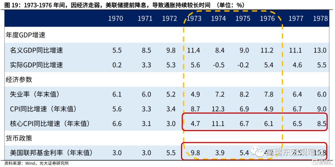 美聯儲因過早讓步於經濟和就業問題,放鬆貨幣政策,不僅沒能有效提振失業率,還導致通脹指標在整個1970年代,維持在較高水平,對經濟形成重大沖擊。