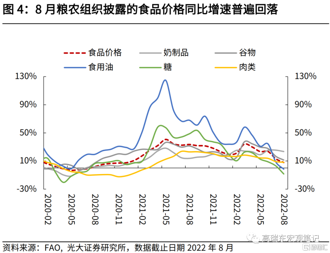 8月能源價格季調後環比降5.0%(7月環比降4.5%),連續兩個月環比下降,主要受燃油(環比-5.9%)、汽油(環比-10.6%)價格影響。受原油價格回落影響,汽油和柴油零售價格自6月下旬起開始持續回落,汽油零售價格8月均值較7月下跌12%;柴油零售價格8月均值較7月下跌9%。