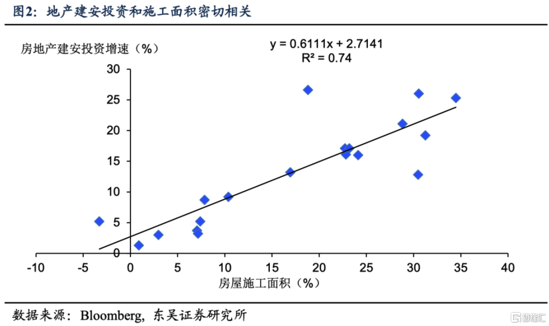 房地產投資:2023年增速-5.8%,負缺口約爲8600億。2023年房地產投資的預測分爲建安支出和土地購置費兩塊。建安支出的預測參考了歷史上其與施工面積在增速上的線性關係(圖2),根據這一經驗規律,考慮到當期的施工面積通過迭代可以換算成前期累積新開工面積(當前約爲55個月),我們假設2023年新開工面積同比增速-15%,則計算得到2023年建安支出同比增速爲-6.2%。我們也考慮了樂觀(新開工面積增速-5%)和悲觀(新開工面積增速-30%)兩種情形,對應的2023年建安支出增速分別爲-5%和-7%(圖3)。