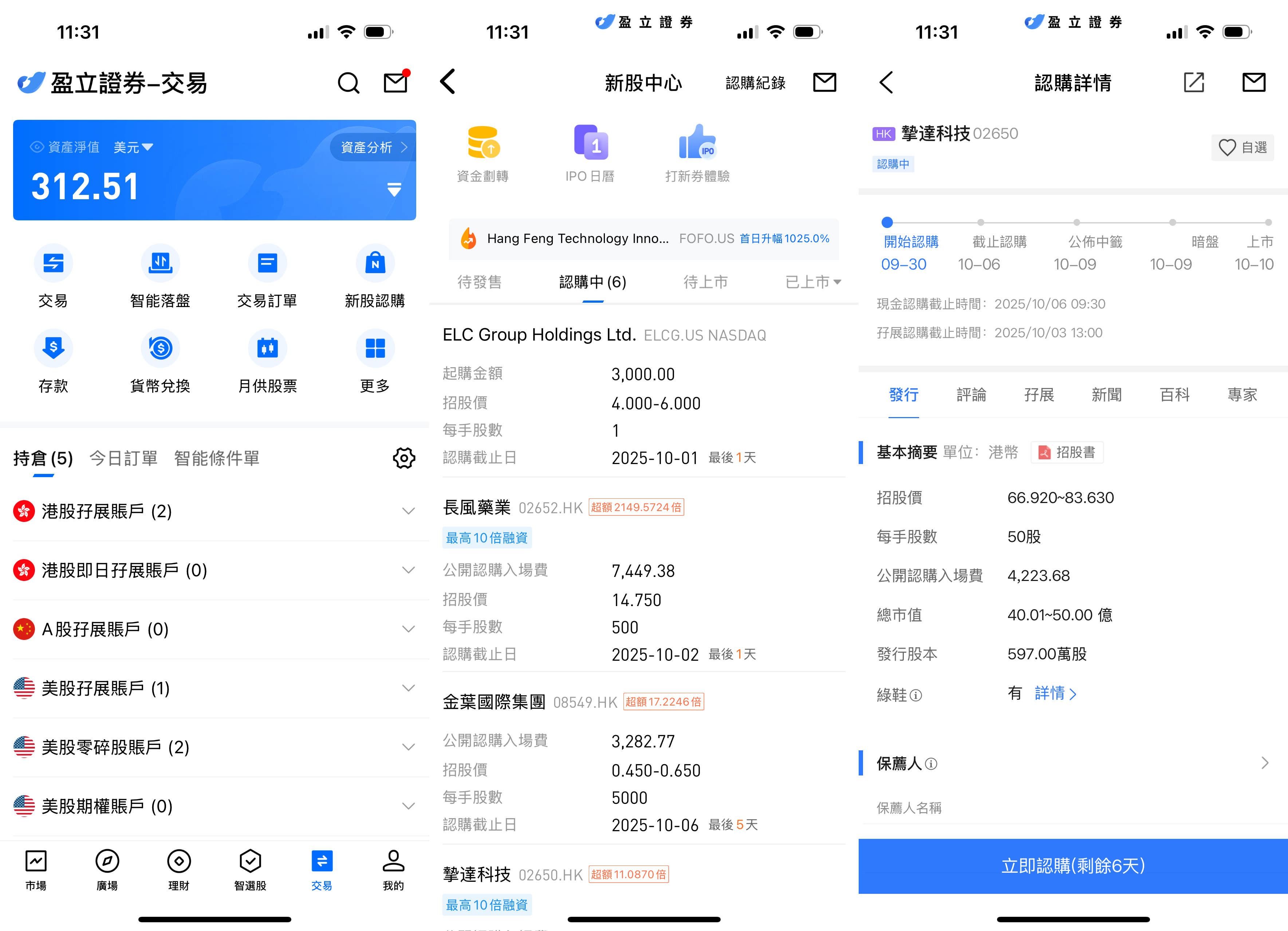uSMART HK App 設有 IPO 中心,提供獨家優惠,客戶可在 App 即時認購公開發售之新股。登入 uSMART HK App 後,點選右下角「交易」,進入「新股認購」,選擇摯達科技後點擊「公開認購」,填寫認購數量並提交訂單即可。