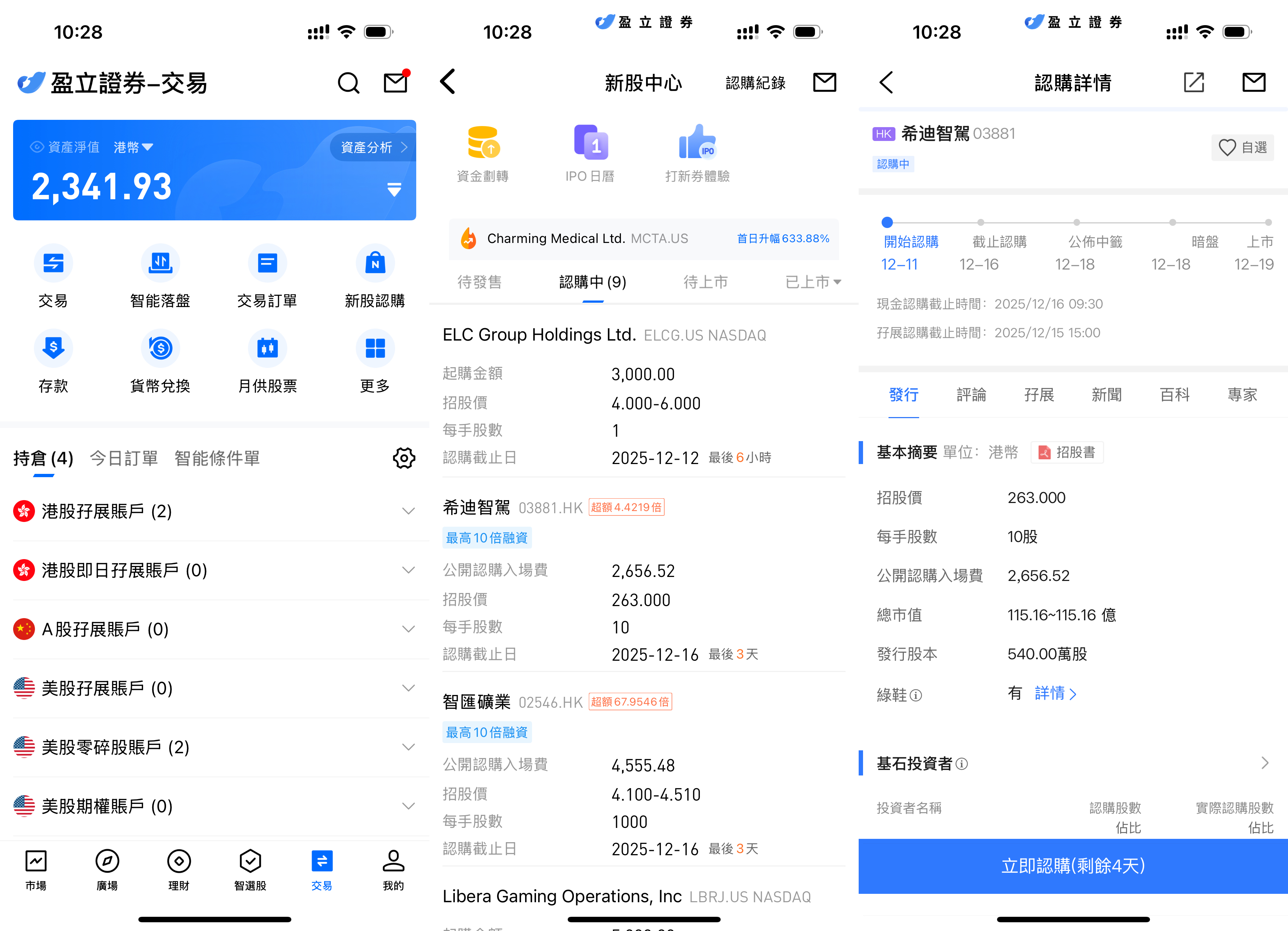 uSMART HK App 設有 IPO 中心,提供獨家優惠,客戶可在 App 即時認購公開發售之新股。登入 uSMART HK App 後,點選右下角「交易」,進入「新股認購」,選擇希迪智駕後點擊「公開認購」,填寫認購數量並提交訂單即可。